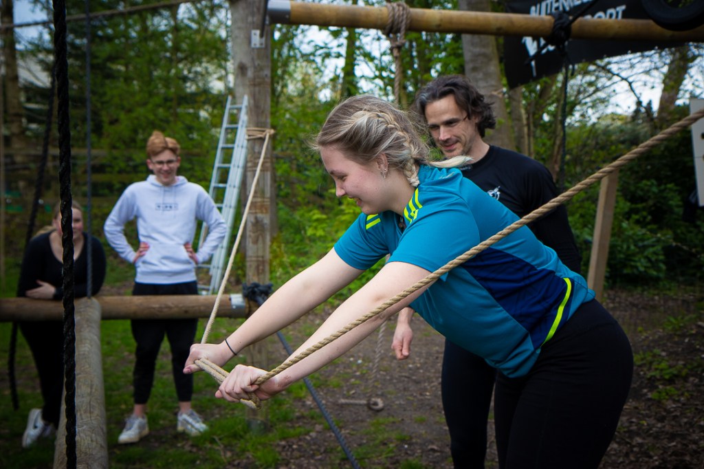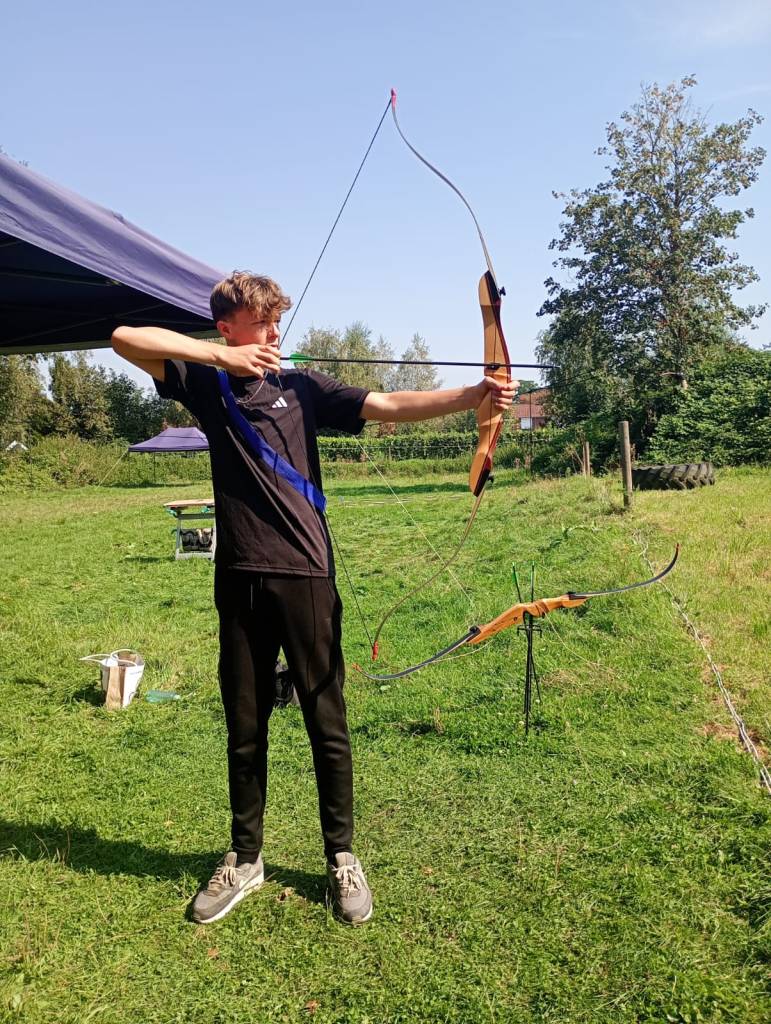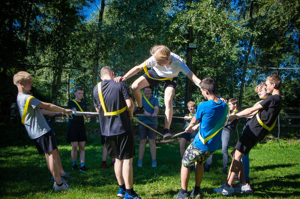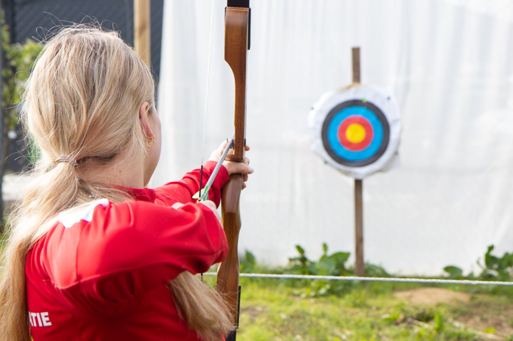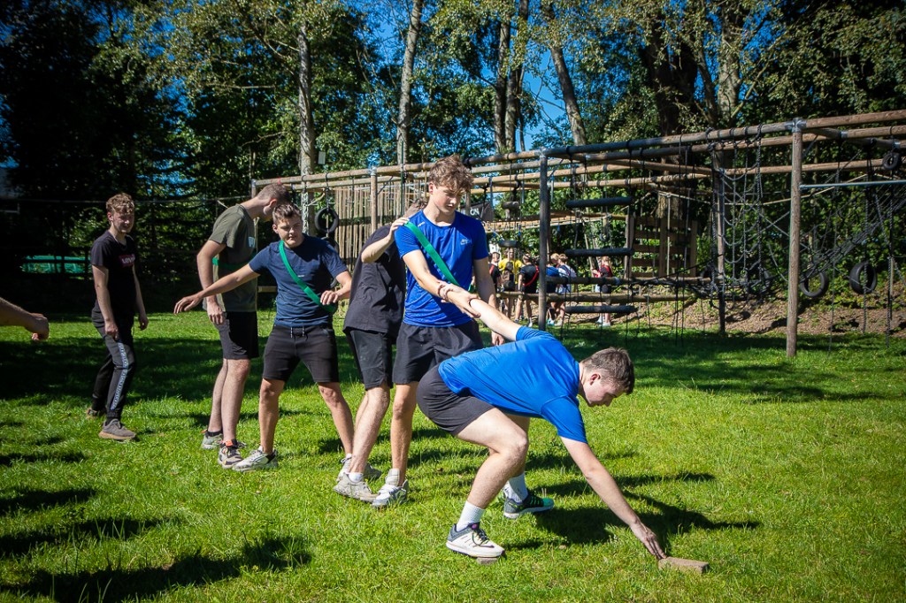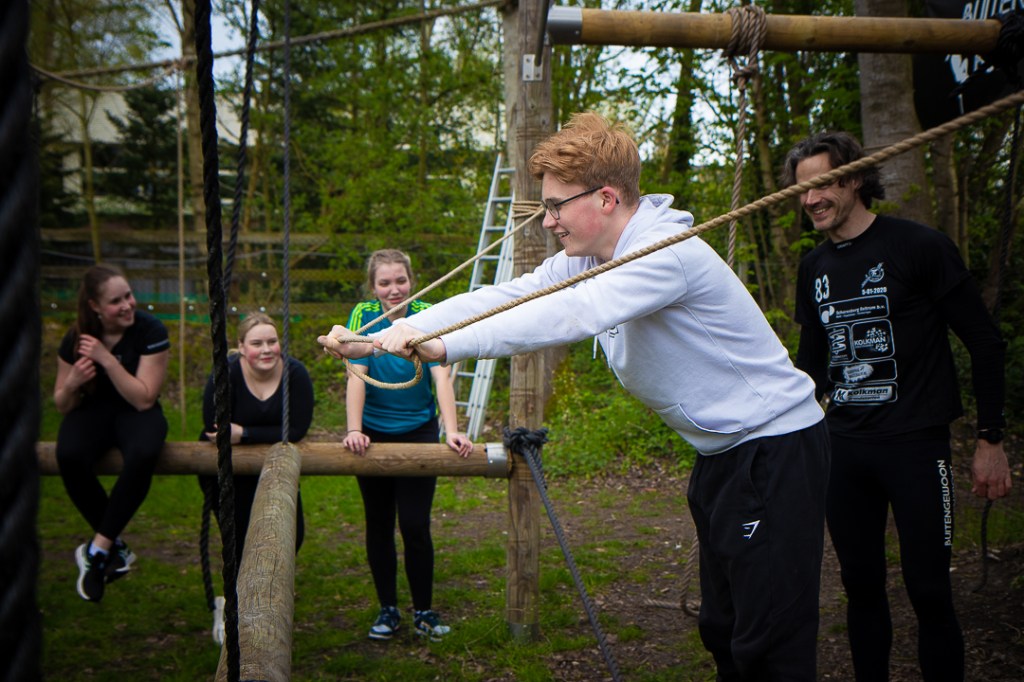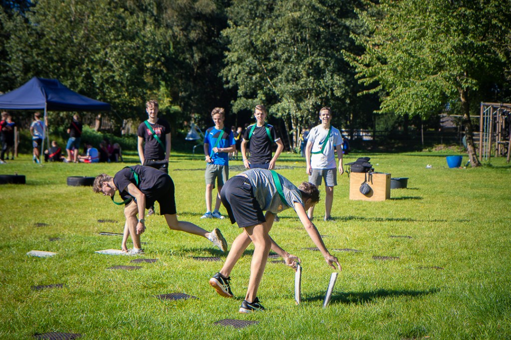 Vandaag hebben we een clinic voor het Drenthe College verzorgd. We begonnen met een korte warming-up in een cirkel met verschillende oefeningen. Daarna volgde een estafette: bij de 1e pylon moesten de leerlingen met de borst de grond aantikken, daarna snel doorrennen naar de volgende pylon waar ze een band moesten slepen en op de terugweg moesten ze nog onder het net doorkruipen. Na de estafette hebben de leerlingen allerlei verschillende klimtechnieken uitgeprobeerd. Als laatste mochten ze ook nog boogschieten. Op een paar regendruppels na bleef het gelukkig droog en af en toe scheen de zon ook nog lekker!