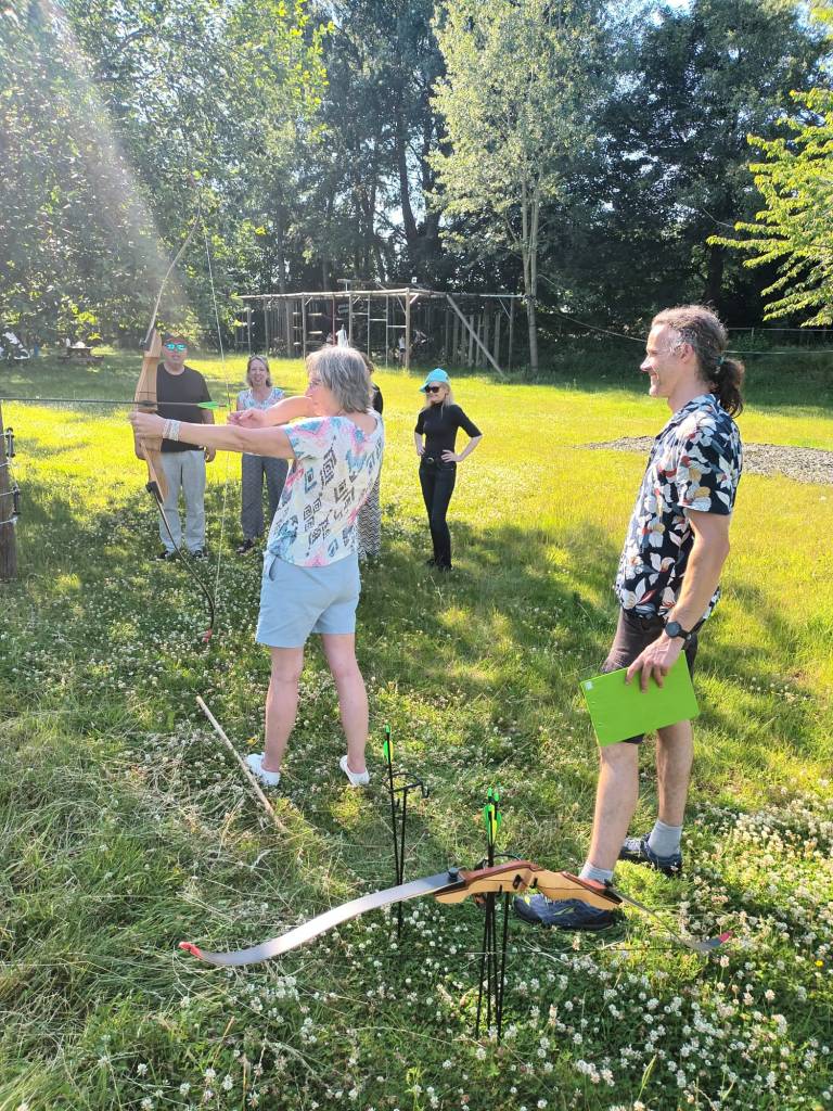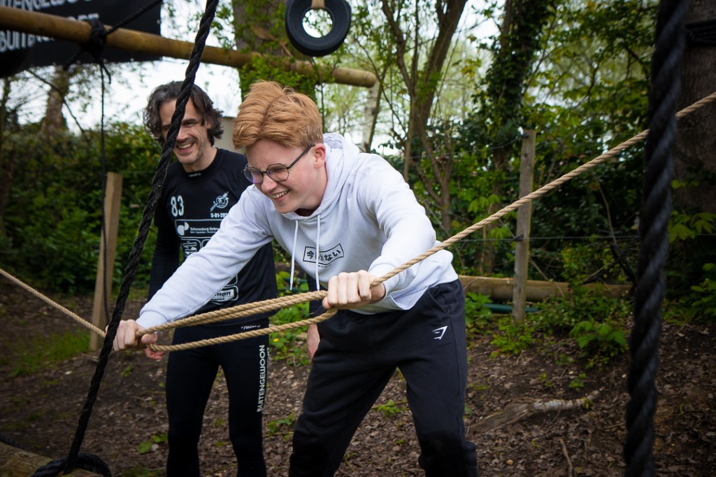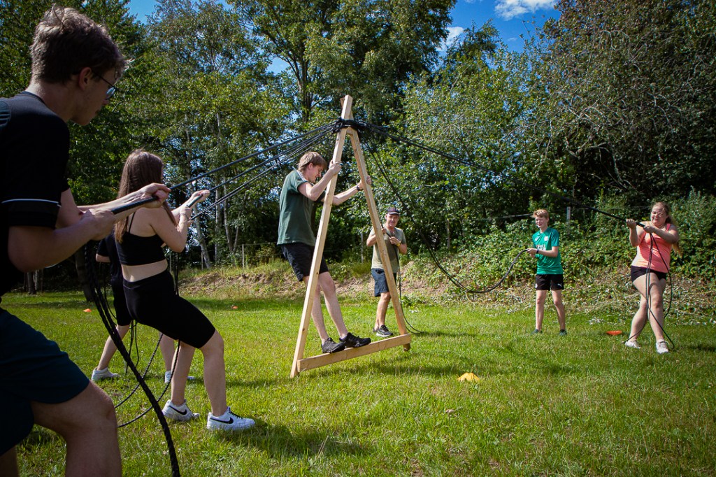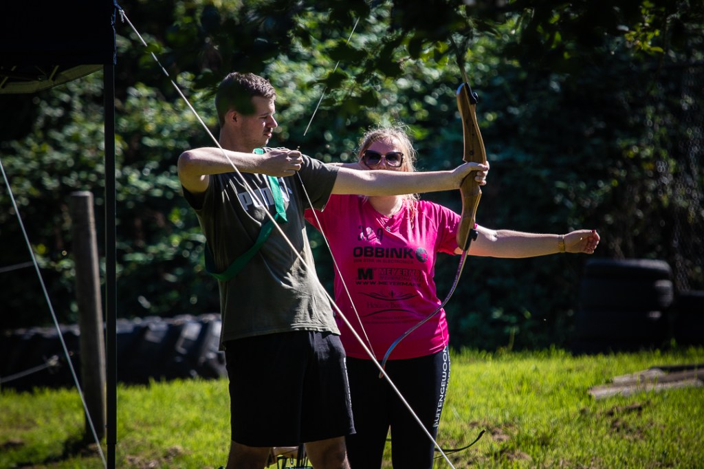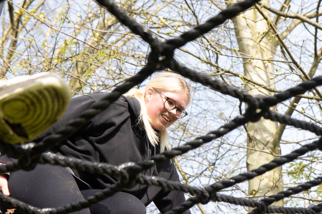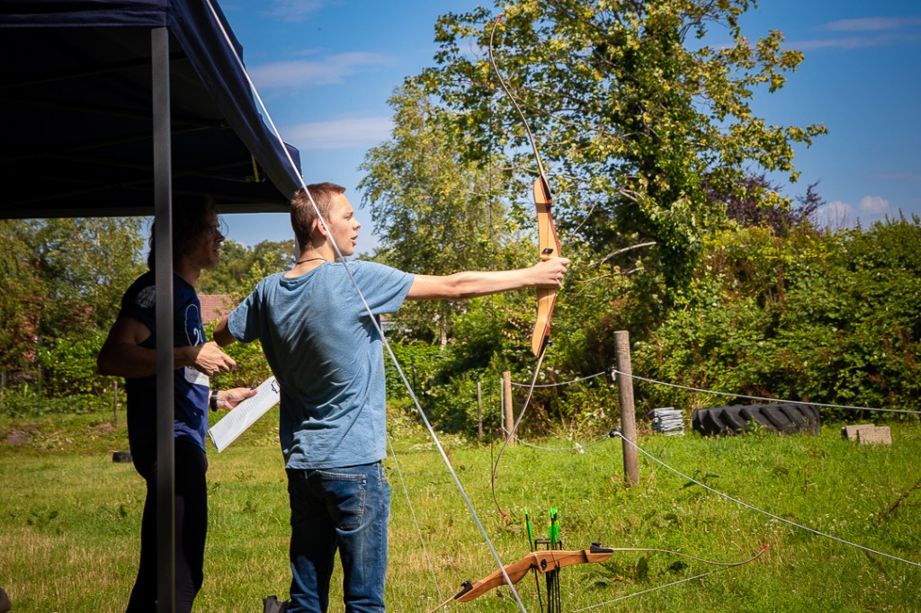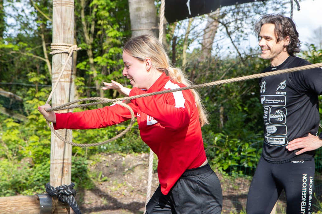 Vandaag hebben we een clinic voor het Drenthe College verzorgd. We begonnen met een korte warming-up in een cirkel met verschillende oefeningen. Daarna volgde een estafette: bij de 1e pylon moesten de leerlingen met de borst de grond aantikken, daarna snel doorrennen naar de volgende pylon waar ze een band moesten slepen en op de terugweg moesten ze nog onder het net doorkruipen. Na de estafette hebben de leerlingen allerlei verschillende klimtechnieken uitgeprobeerd. Als laatste mochten ze ook nog boogschieten. Op een paar regendruppels na bleef het gelukkig droog en af en toe scheen de zon ook nog lekker!