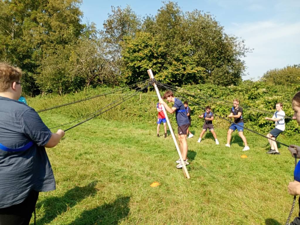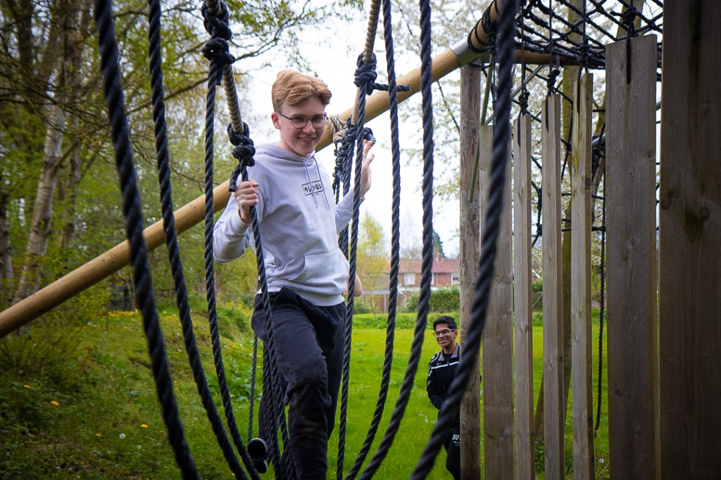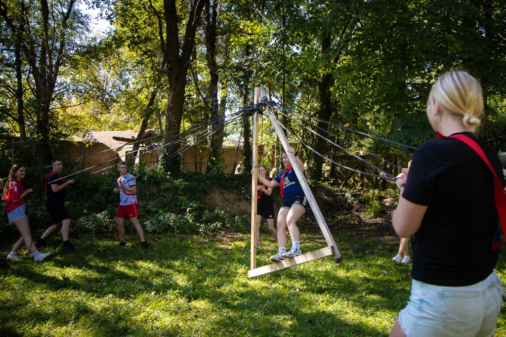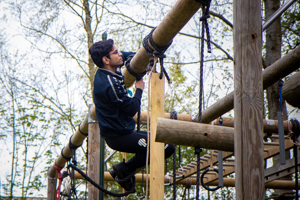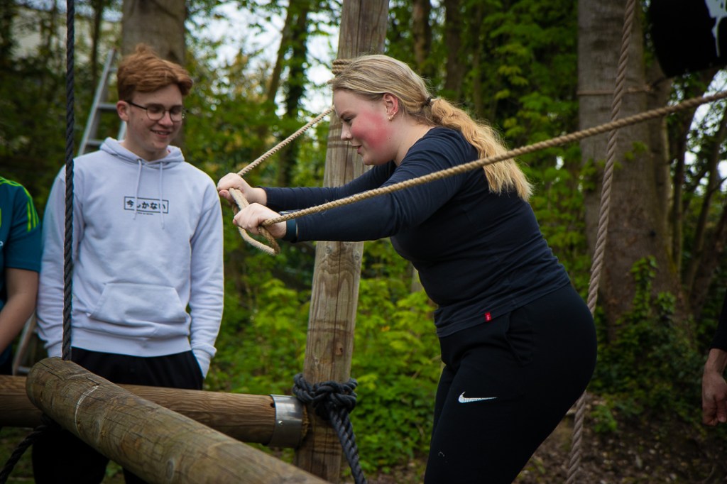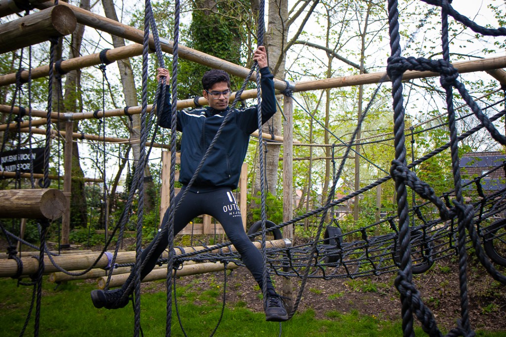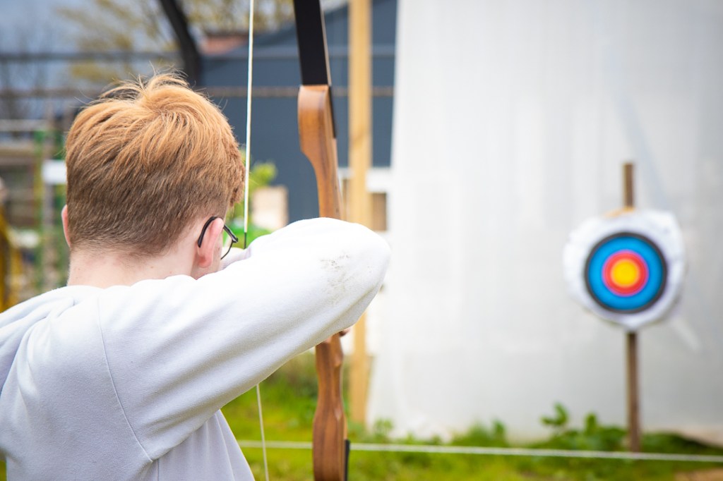 Vandaag hebben we een clinic voor het Drenthe College verzorgd. We begonnen met een korte warming-up in een cirkel met verschillende oefeningen. Daarna volgde een estafette: bij de 1e pylon moesten de leerlingen met de borst de grond aantikken, daarna snel doorrennen naar de volgende pylon waar ze een band moesten slepen en op de terugweg moesten ze nog onder het net doorkruipen. Na de estafette hebben de leerlingen allerlei verschillende klimtechnieken uitgeprobeerd. Als laatste mochten ze ook nog boogschieten. Op een paar regendruppels na bleef het gelukkig droog en af en toe scheen de zon ook nog lekker!