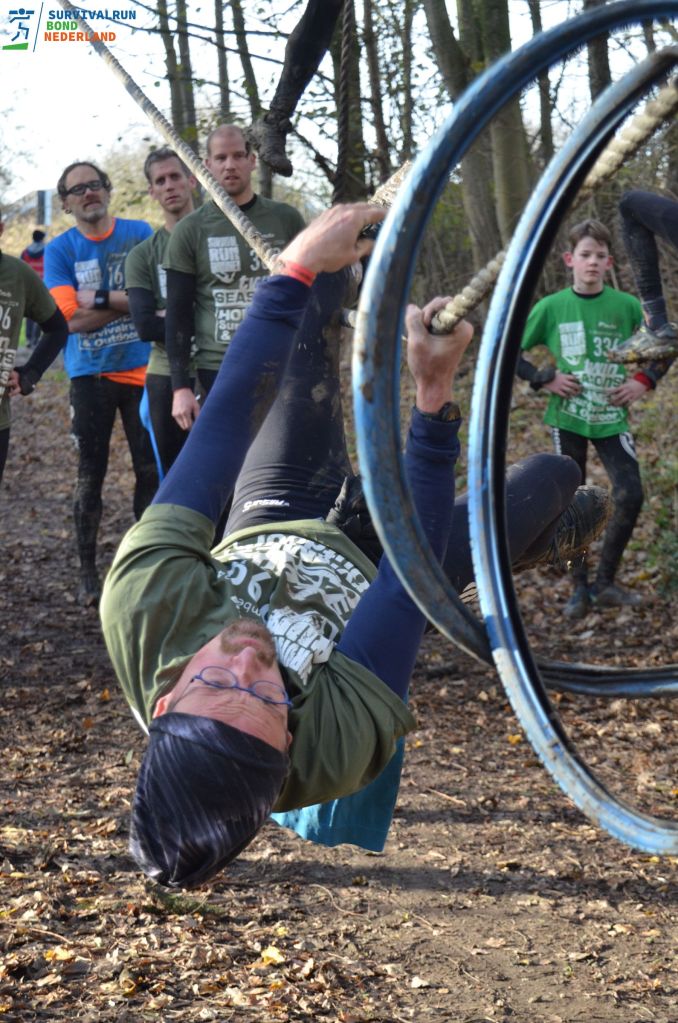Als je op survivalrun gaat kun je op termijn ook wedstrijden gaan lopen. Je begint als recreant en als je de run met bandje uitloopt krijg je 1 punt. Bij 2 punten mag je de overstap naar de BSR maken en bij 6 punten kan je overstappen naar de wedstrijd categorieën: KSR (korte survivalrun), MSR (middellange survivalrun) en LSR (lange survivalrun). Vanuit Buitengewoon Buitensport zijn er inmiddels 2 fanatiekelingen te vinden in de BSR klasse en ze doen het hartstikke goed. Afgelopen zondag was onderstaande topper zelfs 4e bij de 50 plussers!